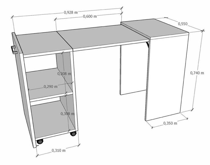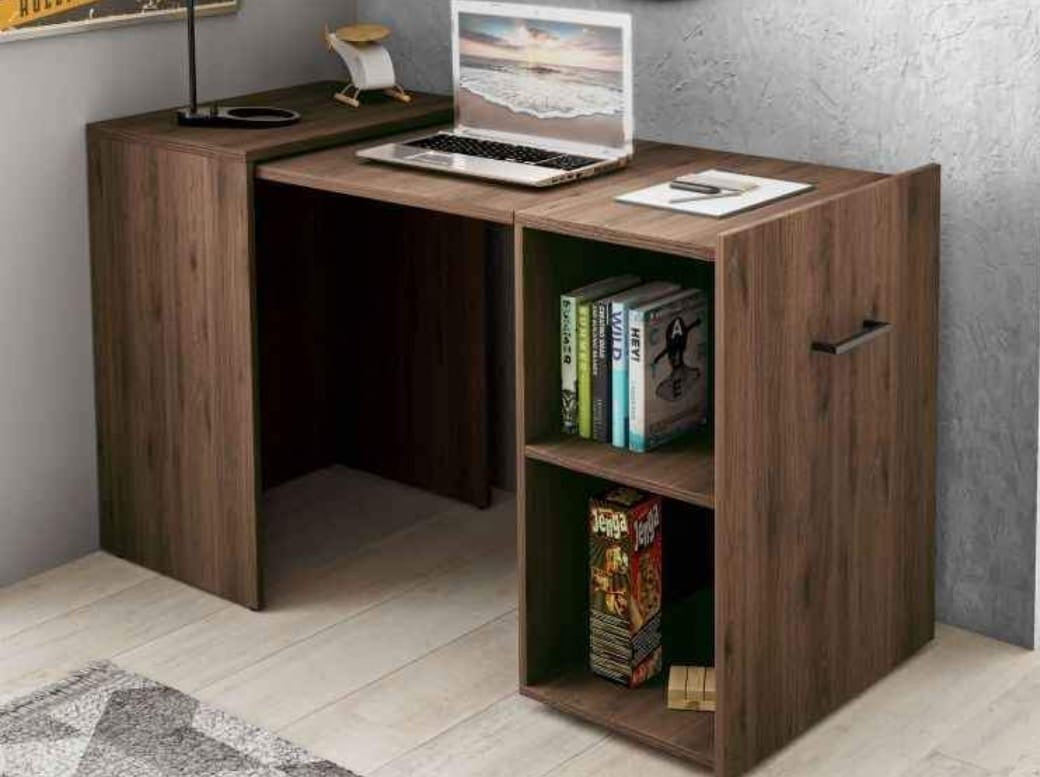 مكتب خشبي قابل للطي مع رفوف تخزين